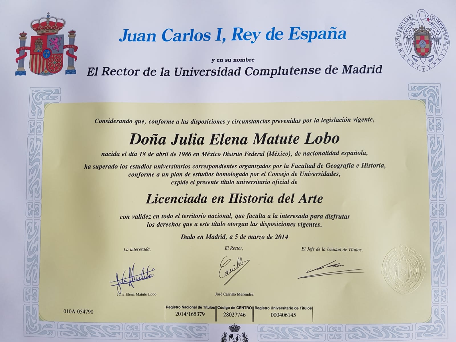 - BA in History of Art at Universidad Complutense de Madrid.